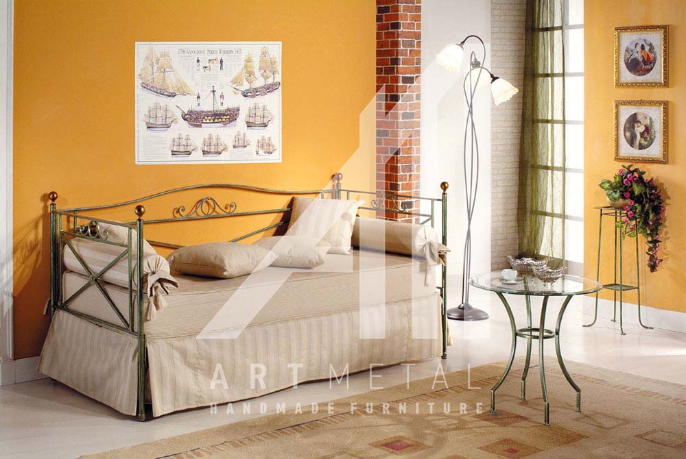 Καναπές κρεβάτι από μασίφ σφυρήλατο σίδερο. Μεταλλικό κρεβάτι επισκέπτη για την διακόσμηση του σπιτιού σας με την τεχνογνωσία και την εγγύηση της Αρτ Μετάλ.