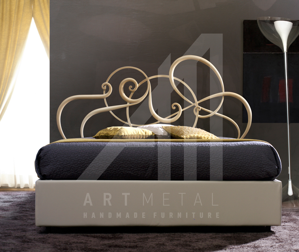 Ντυμένο κρεβάτι με μεταλλικό κεφαλάρι Art 3013-010. Χειροποίητο σιδερένιο κρεβάτι με τεχνόδερμα και ύφασμα για το υπνοδωμάτιό σας από την ART METAL.