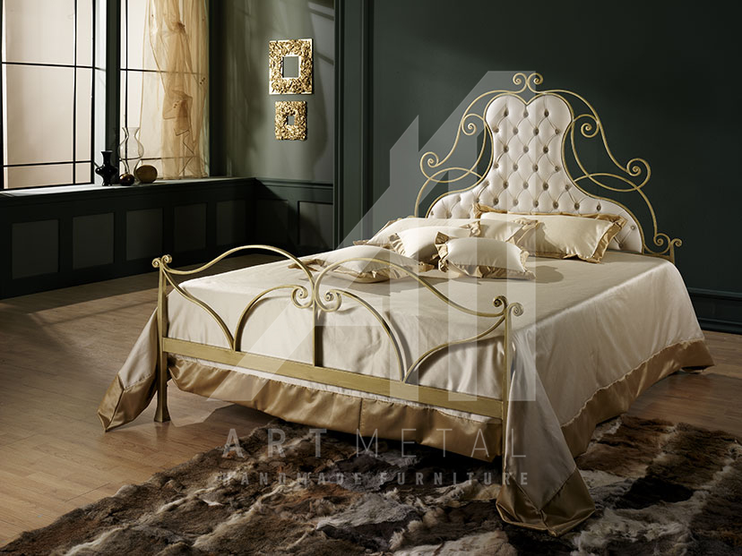 Μεταλλικό κρεβάτι με καπιτονέ κεφαλάρι από δερματίνη 3013-024. Χειροποίητο σιδερένιο κρεβάτι με τεχνόδερμα και ύφασμα για το υπνοδωμάτιό σας από την ART METAL.