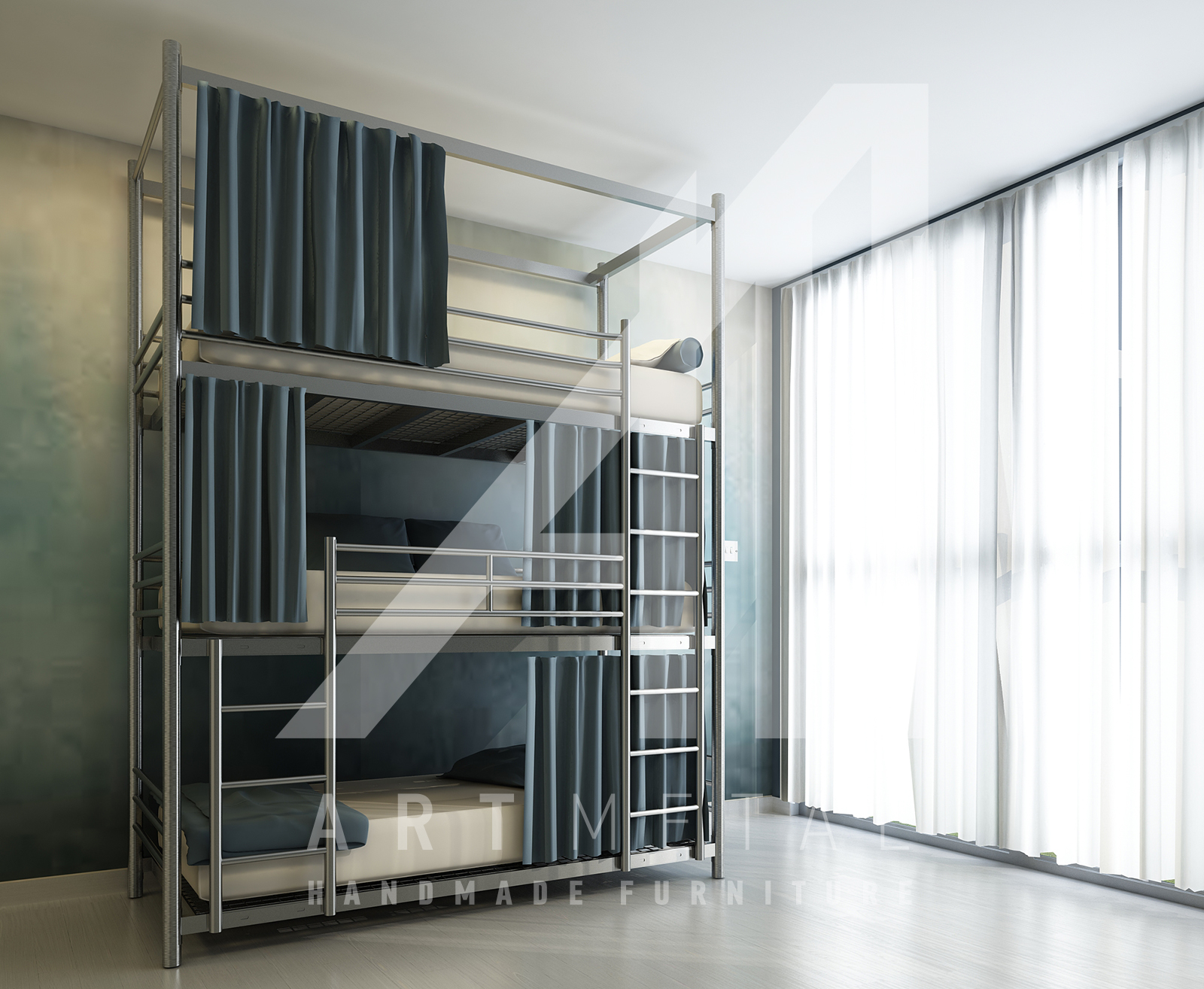 Μεταλλική κουκέτα τριπλή. Τριώροφο κρεβάτι μεταλλικό υψηλής αισθητικής για την κρεβατοκάμαρα σας, με εγγύηση εφ’όρου ζωής από την Art Metal.